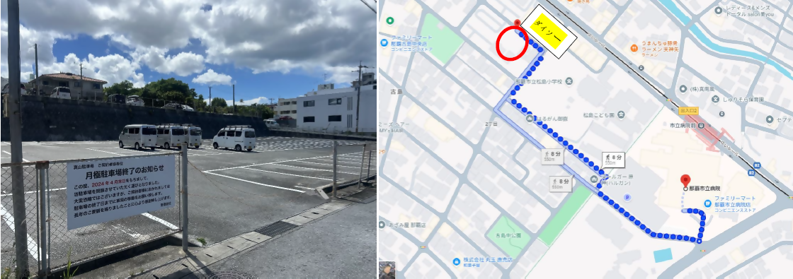 那覇市立病院ご用件の方は、下記の院外駐車場をご利用いただけます。